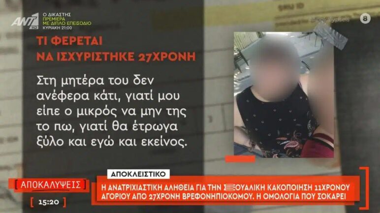 «Αποδέχομαι τις κατηγορίες. Διατηρούσα σχέσεις με τον κουνιάδο της μητέρας του 11χρονου, ο οποίος ήταν στη φυλακή. Η… με γνώριζε εδώ και ενάμιση χρόνο και μου ζήτησε να της κρατάω τα παιδιά, γιατί εργαζόταν κάποιος φορές. Ο μικρός με ρωτούσε αν μπορούσε να πιάσει μέρη του σώματός μου. Στην αρχή του είπα όχι, γιατί θα γινόμουν θεία του, αλλά μετά τον άφησα.