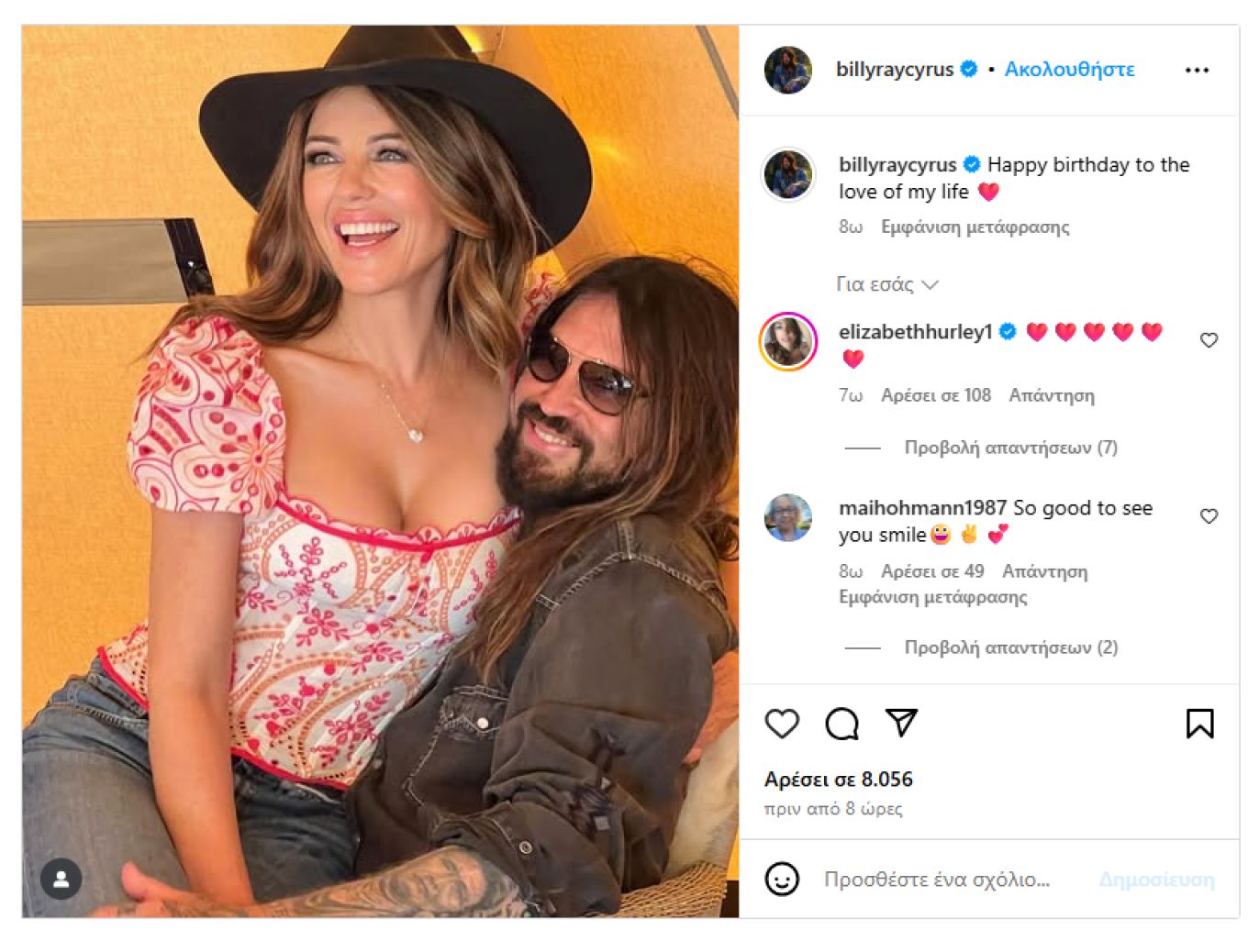Συνοδεύοντας τη δημοσίευσή της, η 60χρονη ηθοποιός σχολίασε χαρακτηριστικά ότι βιώνει μια «τρελή χρονιά». Παράλληλα, μέσα από την ανάρτησή της επιβεβαίωσε για άλλη μια φορά τα έντονα συναισθήματά της για τον νέο σύντροφό της, Billy Ray Cyrus, εκφράζοντας ανοιχτά τον έρωτά της.