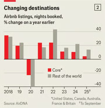 Οι υπεύθυνοι χάραξης πολιτικής σε πόλεις από το Παρίσι έως τη Νέα Υόρκη έχουν επιβάλει περιορισμούς στην πλατφόρμα, την οποία θεωρούν ως παράγοντα που συμβάλλει στην αύξηση των τιμών των κατοικιών, τονίζει ο Economist.