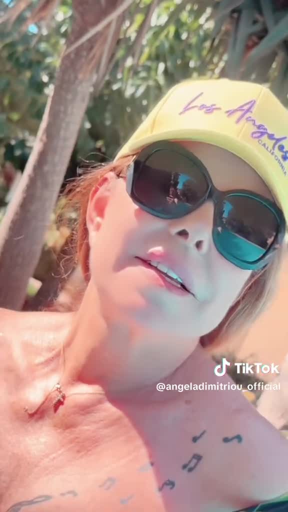 Στιγμές καλοκαιρινής χαλάρωσης απολαμβάνει η μεγάλη κυριά του ελληνικού πενταγράμμου Άντζελα Δημητρίου δίπλα στην πισίνα.