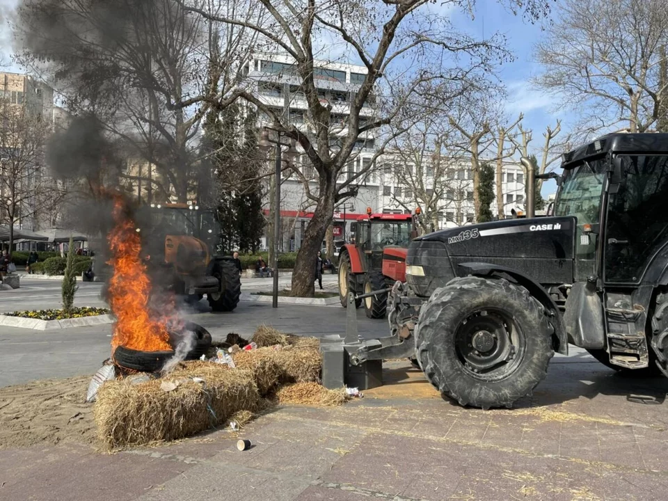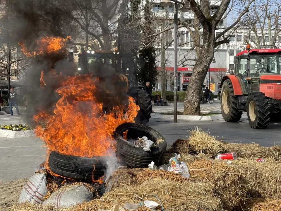 Αγρότες έβαλαν φωτιά σε άχυρα και λάστιχα στην Κεντρική Πλατεία Λάρισας