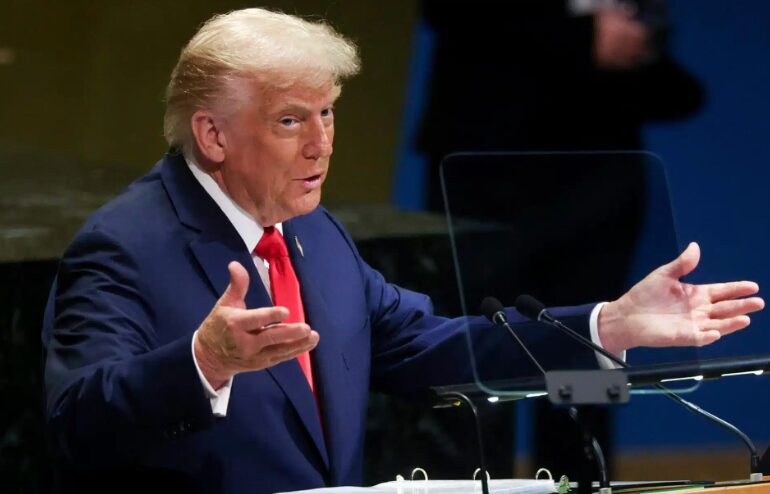 «Ζούμε τη χρυσή εποχή της Αμερικής» ανέφερε ο πρόεδρος των ΗΠΑ Ντόναλντ Τραμπ ξεκινώντας την ομιλία του στη Γενική Συνέλευση του ΟΗΕ, απαριθμώντας τις επιτυχίες που έχει σημειώσει η κυβέρνησή του από τότε που επέστρεψε στην εξουσία, ξεκινώντας από τη μετανάστευση.