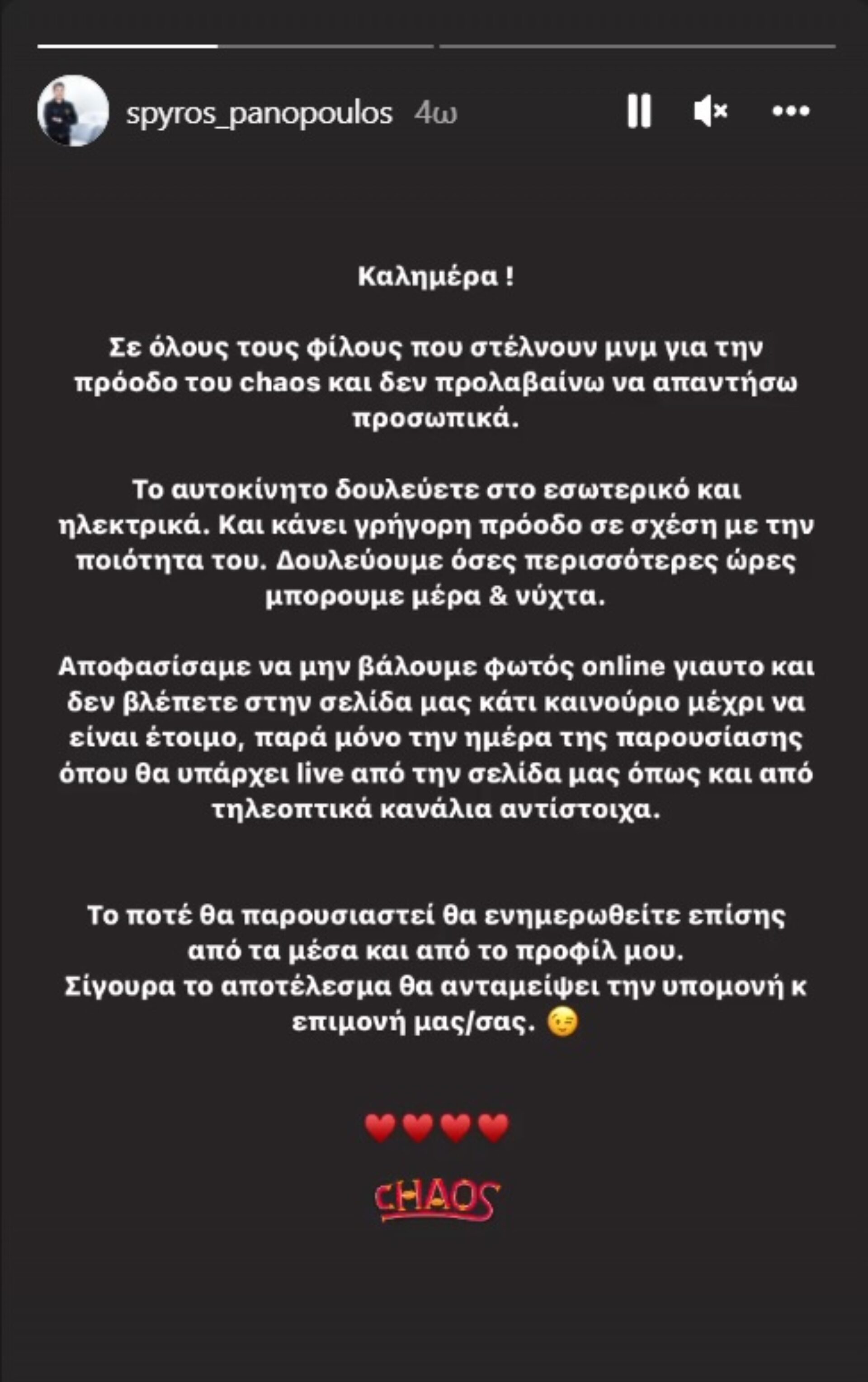 πολυαναμενόμενου Chaos, είχε δηλώσει