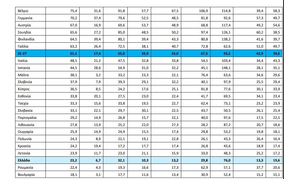 Η παραγωγικοτητα στην Ελλάδα είναι κάτω από το ήμισυ του μέσου όρου της ΕΕ /πηγή: Εurostat-OKE