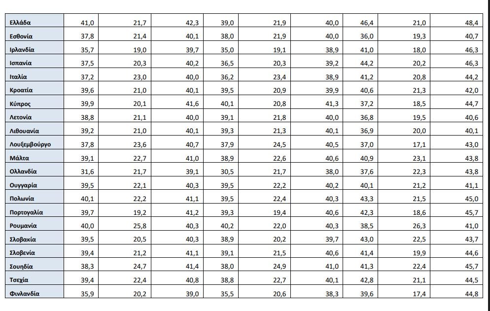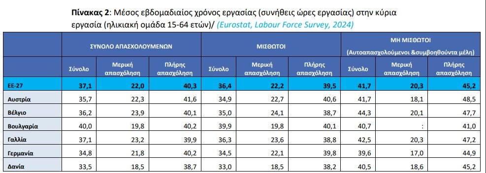 Ο μέσος εβδομαδιαίος χρόνος εργασίας στην Ελλάδα είναι 41 ώρες – ο μεγαλύτερος στην ΕΕ / πηγή: Eurostat, επεξεργασία OKE