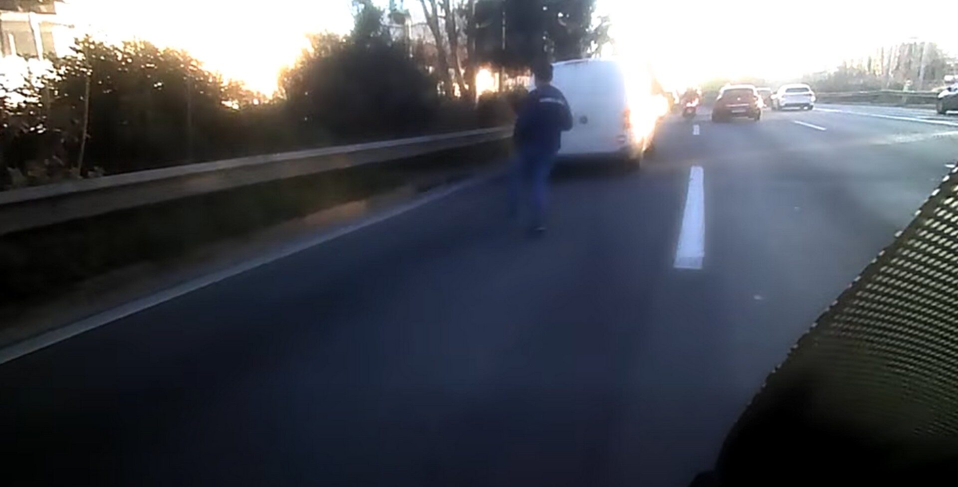 άνθρωπο να τρέχει στη λεωφόρο Κηφισού. Κόβει ταχύτητα και