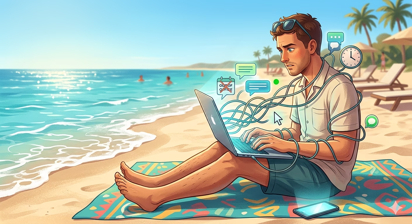 Ο λόγος; Ο πανικός της επιστροφής. Οι εργαζόμενοι προτιμούν να κάνουν μισές διακοπές (δουλεύοντας κρυφά 2-3 ώρες τη μέρα από το νησί), παρά να αποσυνδεθούν πλήρως και να επιστρέψουν σε ένα βουνό από εκατοντάδες αναπάντητα emails και projects που έχουν μείνει πίσω.