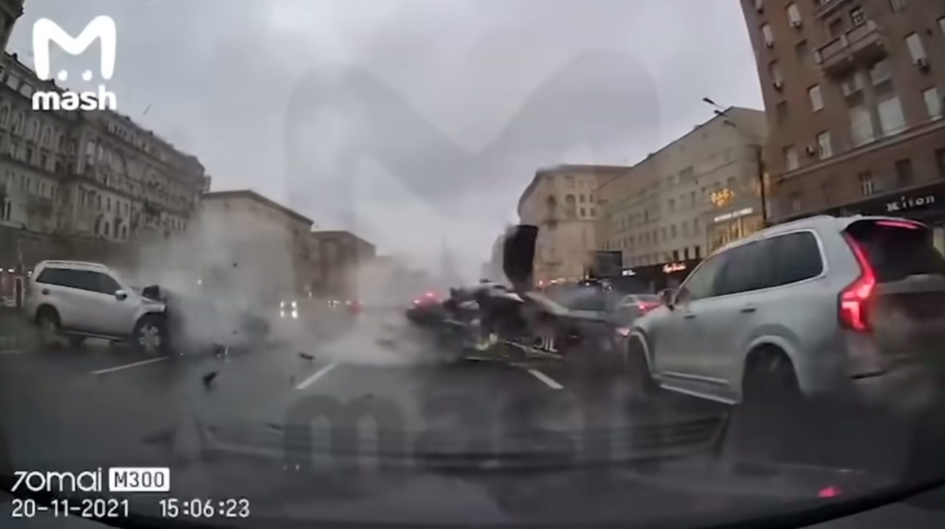 με ένα Volvo XC90 και στη συνέχεια μετωπικά σε μια Mercedes