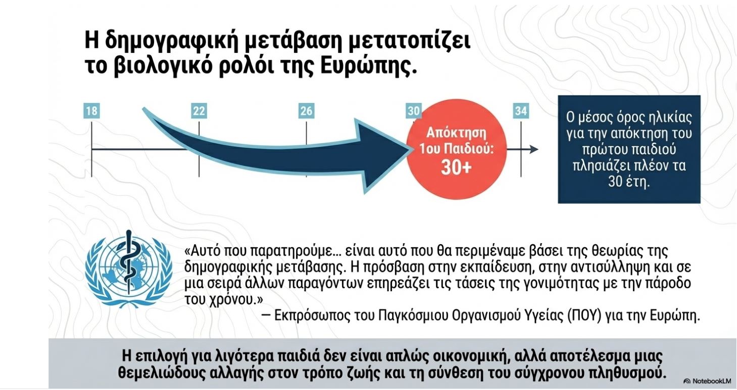 Οι γυναίκες στην Ευρώπη αποκτούν το πρώτο τους παιδί όλο και αργότερα, κοντά στην ηλικία των 30 ετών κατά μέσο όρο, γεγονός που επηρεάζει συνολικά τη γονιμότητα.