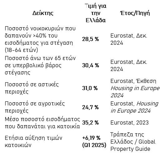 Η στέγαση δεν είναι πολυτέλεια – είναι δικαίωμα. Ωστόσο, τα στοιχεία δείχνουν ότι στην Ελλάδα του 2025, ολοένα και περισσότεροι πολίτες βλέπουν αυτό το δικαίωμα να εξανεμίζεται.