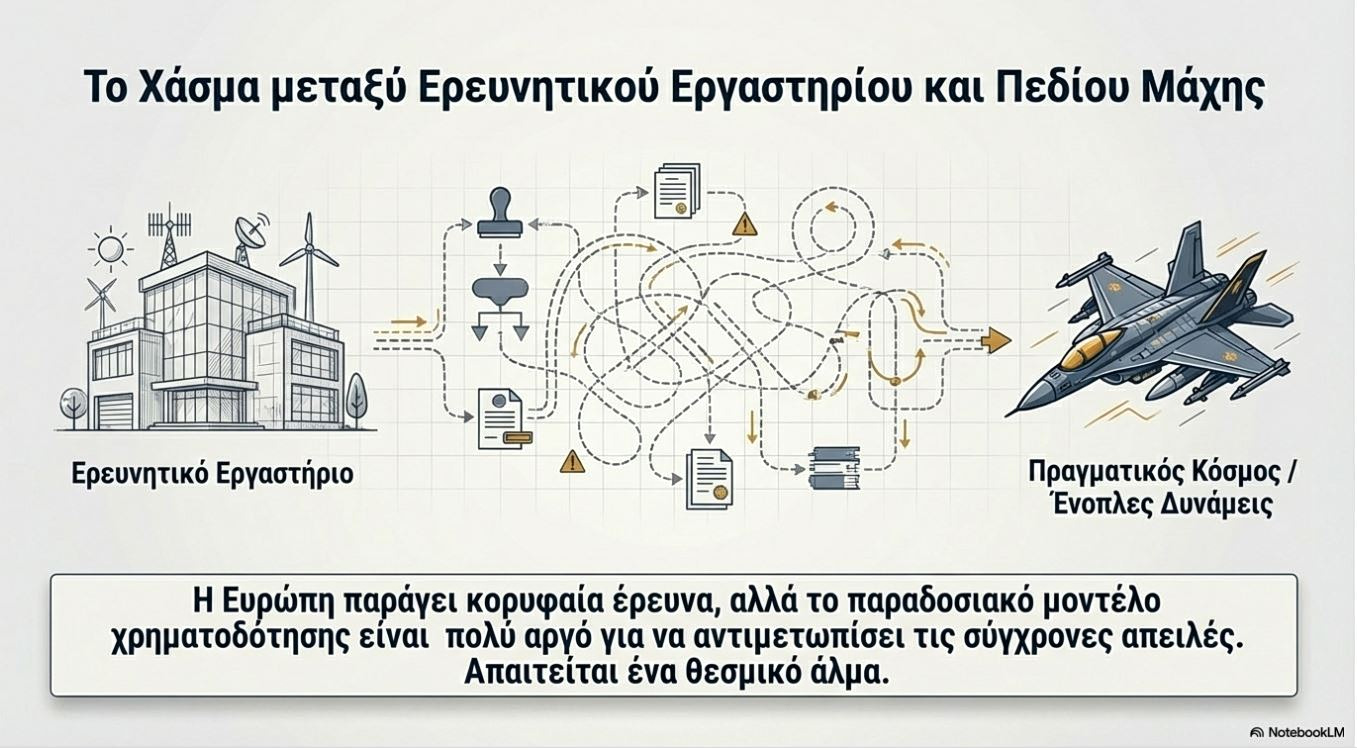 Με το βλέμμα στραμμένο στις πολεμικές συγκρούσεις στην Ουκρανία η Ευρωπαϊκή Ένωση θέλει να εντείνει τις προσπάθειές της για να συμβαδίσει με το εξελισσόμενο τοπίο της πολεμικής τεχνολογίας. Οι Βρυξέλλες πιέζουν να επιταχυνθεί το άλμα από τα ερευνητικά εργαστήρια στην ανάπτυξη στον πραγματικό κόσμο, απαιτώντας ταχύτητα και καινοτομία για την αντιμετώπιση μιας νέας εποχής απειλών για την ασφάλεια αλλά και μερικής μετάβασης της οικονομίας σε άλλα… μονοπάτια.