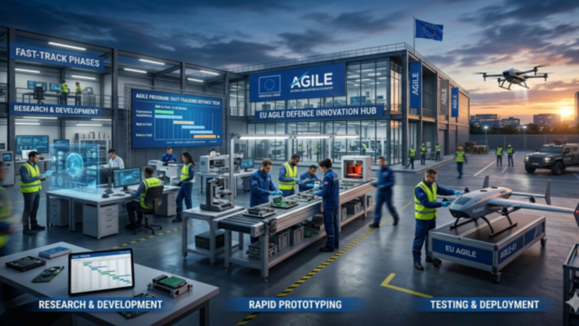 Το AGILE, το οποίο προτάθηκε τον Μάρτιο του 2026 από την Ευρωπαϊκή Επιτροπή, είναι ένα εργαλείο ταχείας χρηματοδότησης για τη μετακίνηση των αμυντικών τεχνολογιών από την ανάπτυξη στην ανάπτυξη πολύ ταχύτερα από τα υφιστάμενα προγράμματα της ΕΕ.