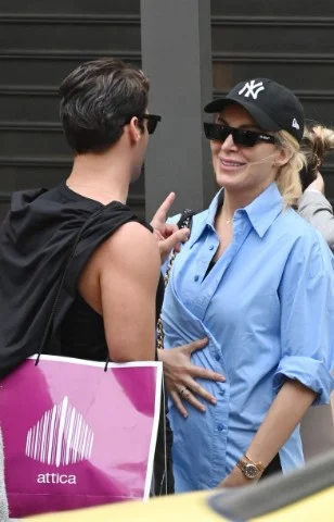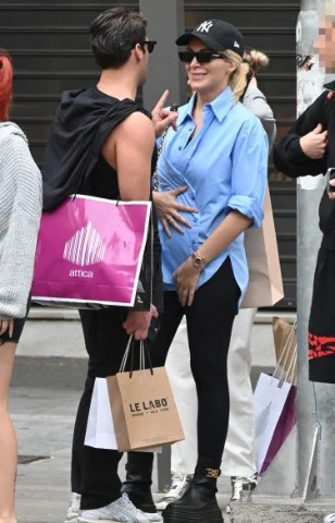 Ο φωτογραφικός φακός εντόπισε πρόσφατα την παρουσιάστρια σε έξοδο με τον κολλητό της φίλο, Ανέστη Ευαγγελόπουλο, να φορά κολάν και φαρδύ πουκάμισο, επιλογές που ενδεχομένως έγιναν για να καλύψουν την κοιλίτσα που, έχει αρχίσει να διαγράφεται.
