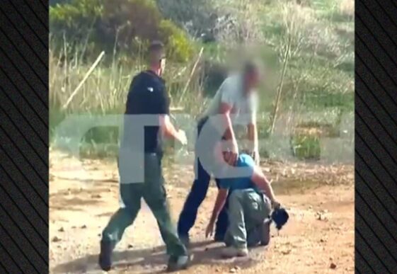 Ο εικονολήπτης κρατούσε μακριά την κάμερα προσπαθώντας να την προστατεύσει ενώ επενέβη και ένα άτομο για να σταματήσει τη συμπλοκή.