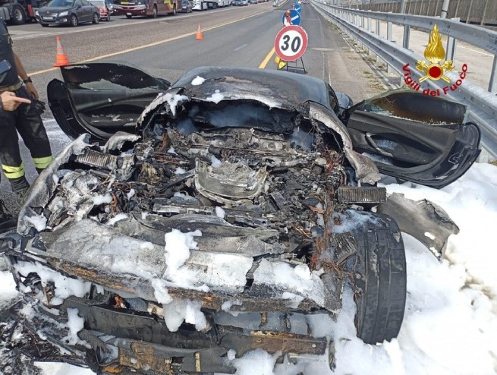 φορά της Ferrari, έγινε παρανάλωμα του πυρός στην άσφαλτο. Το αξίας