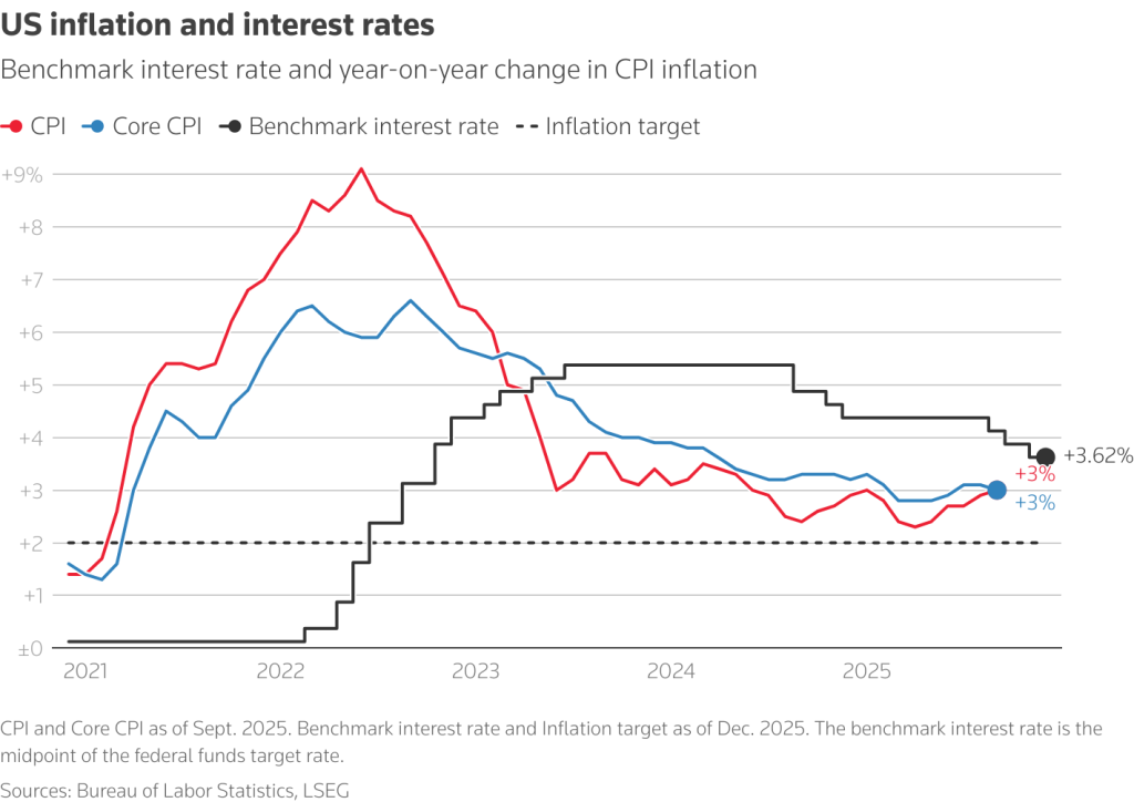 Οι υπεύθυνοι χάραξης πολιτικής της Fed προβλέπουν μόνο μία μείωση κατά 25 μονάδες βάσης το 2026, γεγονός που τους θέτει σε πιθανή σύγκρουση με τον πρόεδρο Ντόναλντ Τραμπ, ο οποίος επιθυμεί μεγαλύτερη χαλάρωση, όπως και ο επικρατέστερος υποψήφιος για την προεδρία της Fed και οικονομικός σύμβουλος του Λευκού Οίκου, Κέβιν Χάσετ.