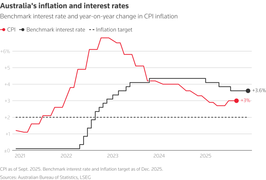 Η Κεντρική Τράπεζα της Αυστραλίας φαίνεται να πλησιάζει σε σημείο καμπής, αφού διατήρησε τα επιτόκια σταθερά στο 3,6% νωρίτερα αυτό το μήνα και εξέδωσε αυστηρή προειδοποίηση για τον πληθωρισμό.