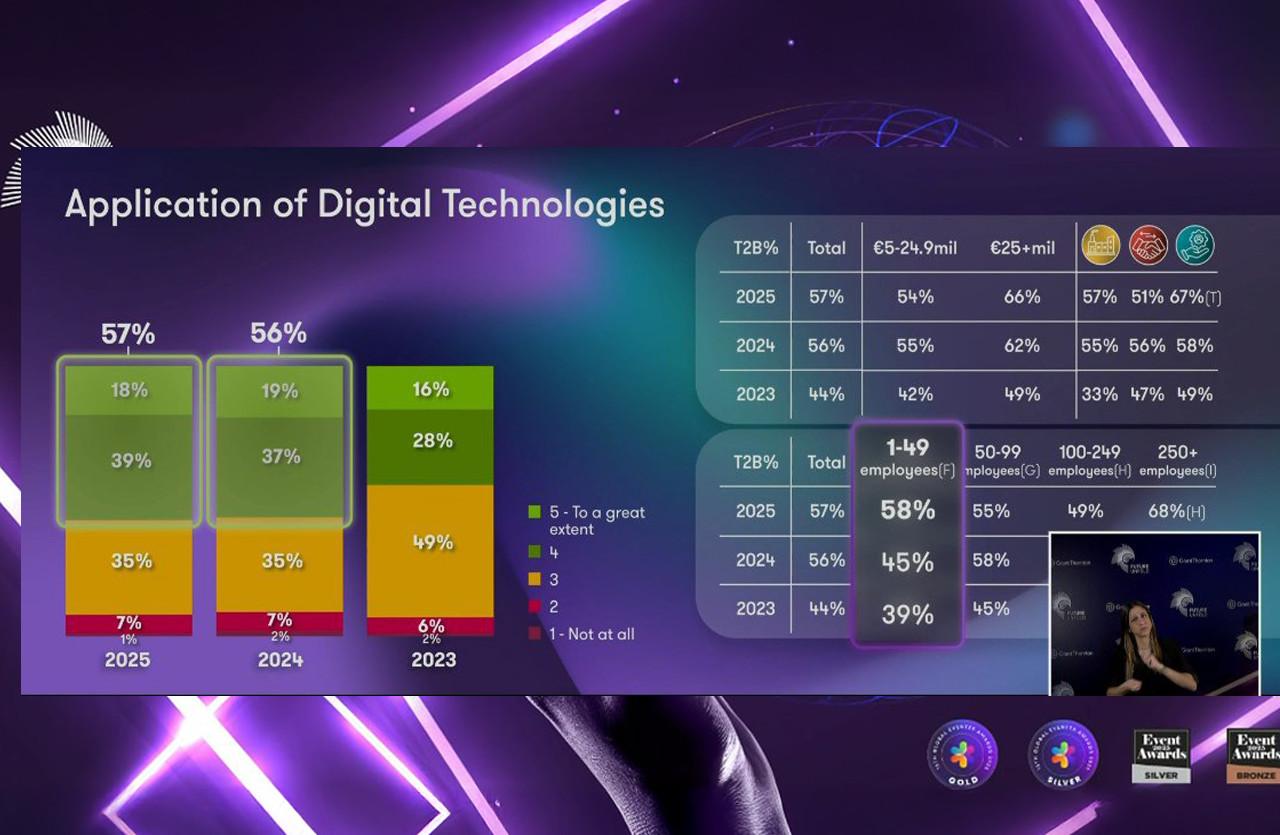 Η παρουσίαση της έρευνας που πραγματοποιήθηκε από την Στέλλα Αγγελοπούλου, Partner και Head of Technology της Grant Thornton, βασίστηκε σε δείγμα 400 επιχειρήσεων που αντιπροσωπεύουν περίπου το 70% του ελληνικού ΑΕΠ, με 26% από τη βιομηχανία, 47% το εμπόριο και 27% τις υπηρεσίες. «Επιχειρήσεις, που πέρασαν από τον ενθουσιασμό της τεχνητής νοημοσύνης στη συνύπαρξη», σχολίασε η κυρία Αγγελοπούλου.