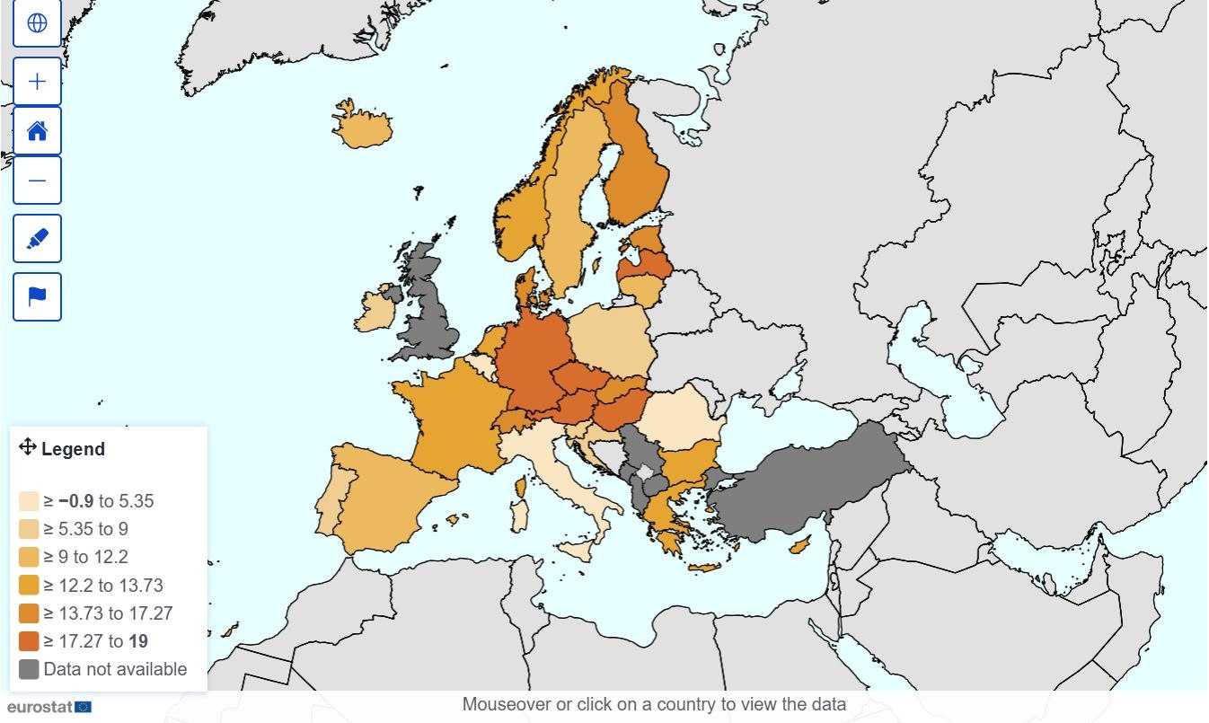 Σύμφωνα με τα στοιχεία της Eurostat η μέση μισθολογική ανισότητα μεταξύ των φύλων στην ΕΕ πέρυσι ήταν σημαντικά υψηλή σε Λετονία (19%), Αυστρία (18,3%), Τσεχία (18%), Ουγγαρία (17,8%) και Γερμανία (17,6%). Στην Ελλάδα, το χάσμα μειώθηκε στο 13,6%, είναι όμως ακόμη υψηλότερο από τον μέσο ευρωπαϊκό όρο, ενώ μόνο το Λουξεμβούργο έχει κλείσει την «ψαλίδα» μεταξύ των δύο φύλων.