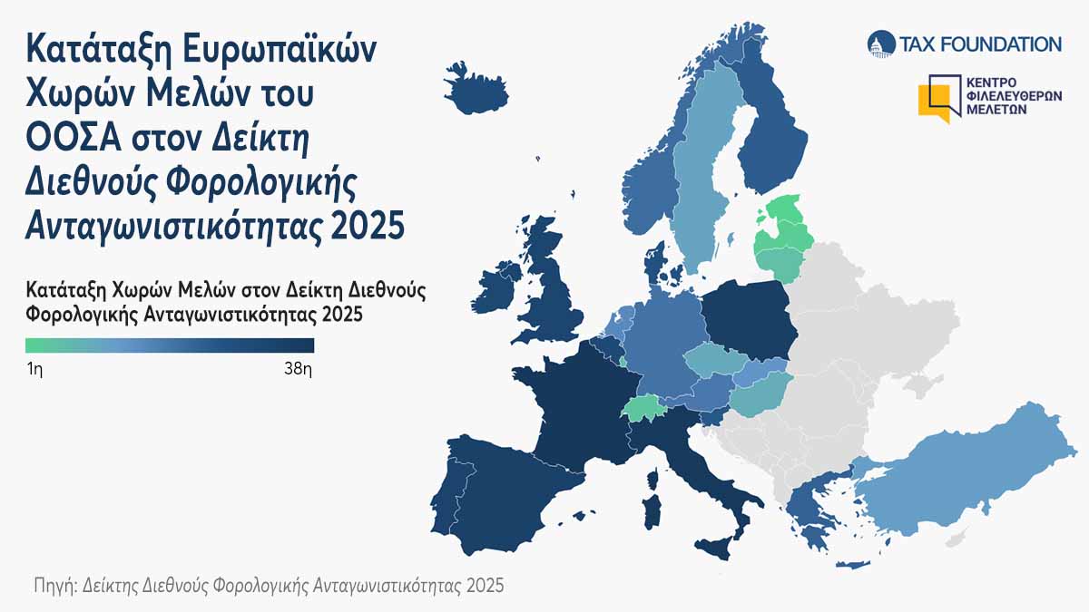 Ο Δείκτης Διεθνούς Φορολογικής Ανταγωνιστικότητας (ΔΔΦΑ) 2025 αξιολογεί τα φορολογικά συστήματα των 38 χωρών-μελών του Οργανισμού Οικονομικής Συνεργασίας και Ανάπτυξης (ΟΟΣΑ)