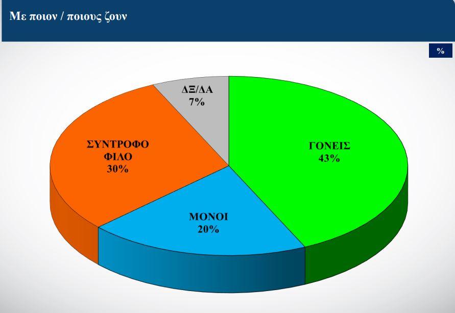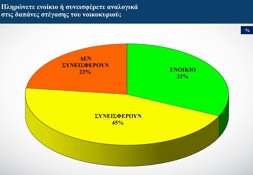 Σύμφωνα με την έρευνα του ΙΝΕ ΓΣΕΕ μόλις το 20% των νέων εργαζόμενων ζουν μόνοι τους. Το 45% των νέων εξακολουθεί να ζει με την οικογένειά του (το ποσοστό αυτό γι’ αυτούς που εργάζονται με μερική απασχόληση ανεβαίνει στο 65%) και το 30% με φίλο ή σύντροφο. Μόλις το 30% συμβάλλει οικονομικά στο ενοίκιο ή στα έξοδα στέγασης.