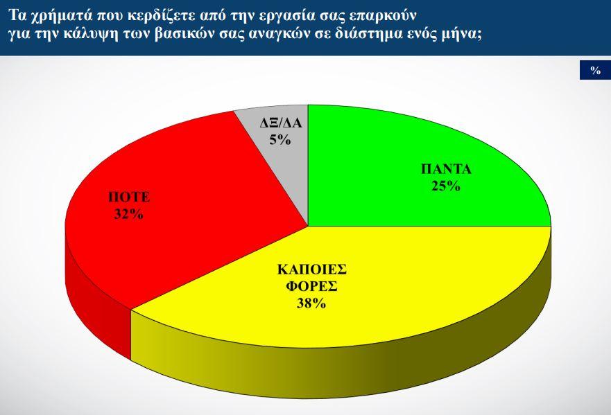 Επίσης, το 70% δηλώνει ότι τα εισοδήματά του δεν επαρκούν για τις βασικές ανάγκες και το 62% αναγνωρίζει οικονομική εξάρτηση από τους γονείς.