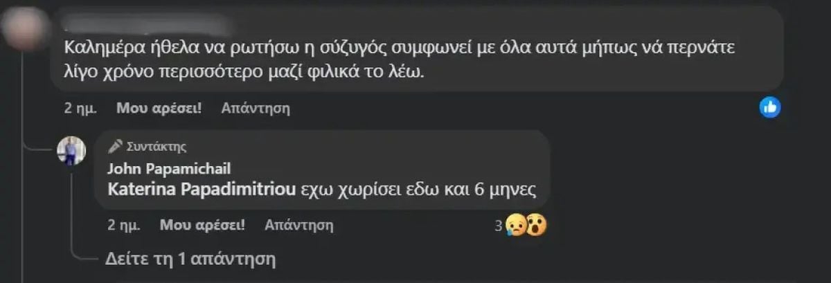 Όλα ξεκίνησαν από μια αθώα ερώτηση. Ένας follower του Γιάννη Παπαμιχαήλ στο Facebook, παρατηρώντας την απουσία της Ελένης Κολτζή από τις αναρτήσεις του, αποφάσισε να σχολιάσει φιλικά: «Καλημέρα ήθελα να ρωτήσω η σύζυγος συμφωνεί με όλα αυτά μήπως να περνάτε λίγο χρόνο περισσότερο μαζί, φιλικά το λέω».