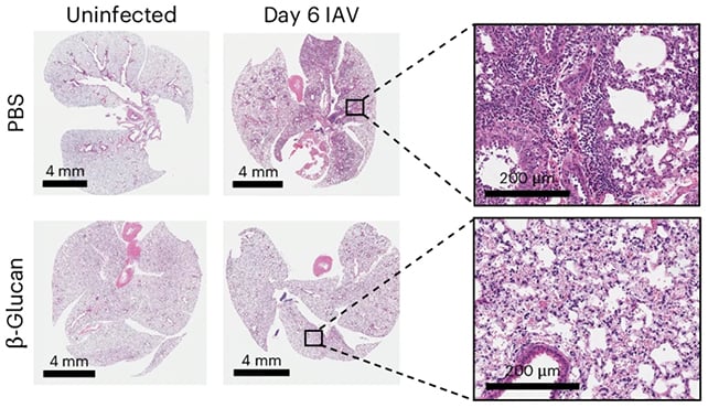Αυτό που κάνει τη β-γλυκάνη ακόμα πιο ξεχωριστή είναι ότι φαίνεται να επαναπρογραμματίζει τα κύτταρα του ανοσοποιητικού συστήματος για να αντιμετωπίσουν καλύτερα τη γρίπη. Τα ποντίκια που έλαβαν θεραπεία είχαν περισσότερα ανοσοκύτταρα που ονομάζονται ουδετερόφιλα, αλλά συμπεριφέρονταν με πιο ελεγχόμενο τρόπο από το κανονικό.