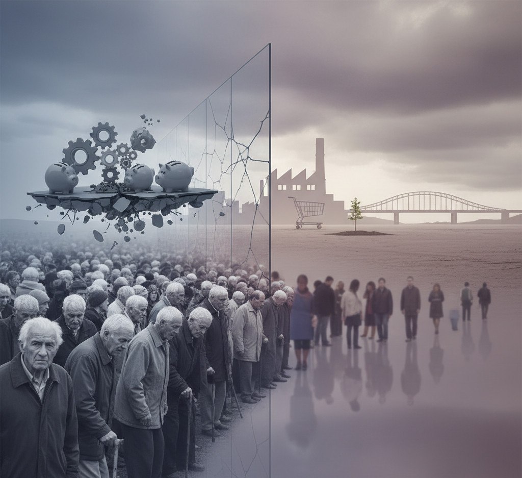 Οικονομία της συνταξιοδότησης: Πολλές δυτικές χώρες μετατρέπονται σε «οικονομίες συνταξιοδότησης», όπου ένα αυξανόμενο ποσοστό του ΑΕΠ δίδεται στη φροντίδα και τη συνταξιοδότηση, αντί για παραγωγικές επενδύσεις.