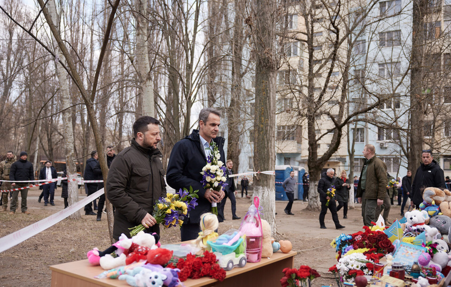Εκείνη την ώρα ο Κυριάκος Μητσοτάκης και ο Βολοντίμιρ Ζελένσκι ξεκινούσαν μια περιοδεία στην πόλη την οποία και ολοκλήρωσαν αγνοώντας την επιθετικότητα των Ρώσων μέσα σε περίπου 7 ώρες.