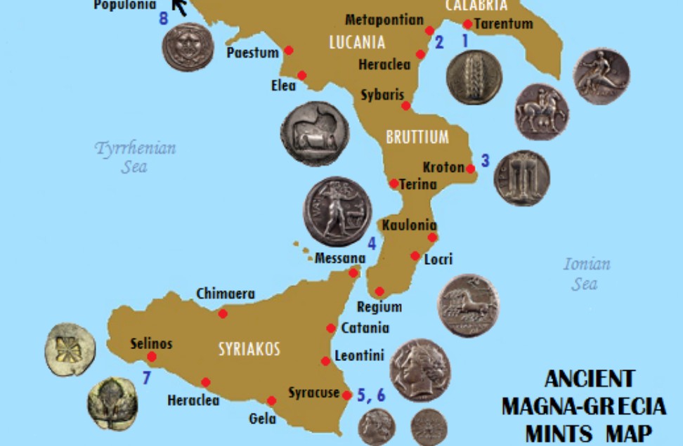 Από τον 8ο αιώνα π.Χ., Έλληνες από την Εύβοια, την Κόρινθο, τη Σπάρτη και άλλες πόλεις ίδρυσαν δεκάδες αποικίες στη νότια Ιταλία και τη Σικελία: