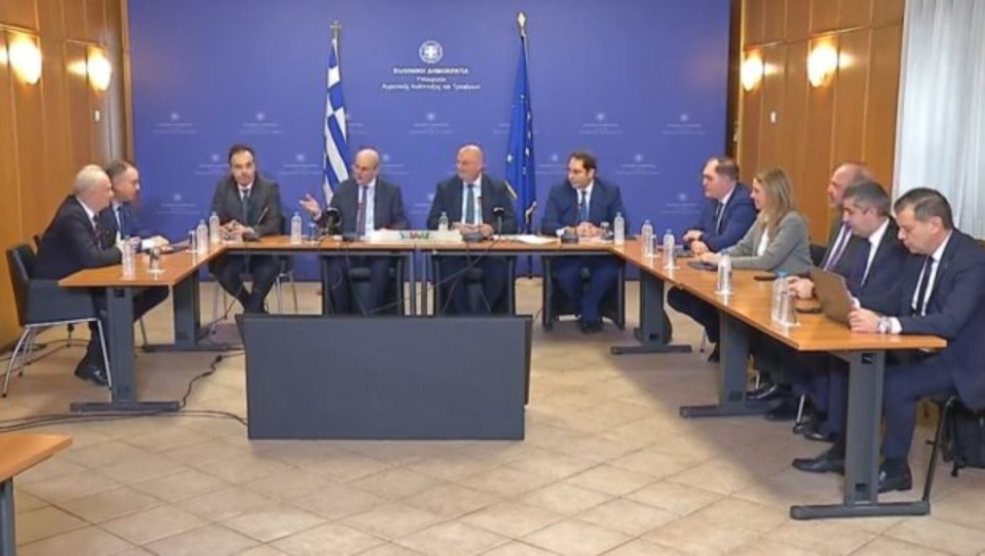 Σε εξέλιξη είναι οι κυβερνητικές ανακοινώσεις για τους αγρότες, στα γραφεία του ΥΠΑΑΤ. Ο αντιπρόεδρος της κυβέρνησης, Κωστής Χατζηδάκης, ο υπουργός Αγροτικής Ανάπτυξης, Κώστας Τσιάρας, ο υπουργός Ψηφιακής Διακυβέρνησης, Δημήτρης Παπαστεργίου, και ο υφυπουργός Οικονομίας αρμόδιος για τη δημοσιονομική πολιτική, Θάνος Πετραλιάς, παρουσιάζουν πιο εξειδικευμένα τα μέτρα που ήδη έχει διαμηνύσει η κυβέρνηση ότι συζητά.