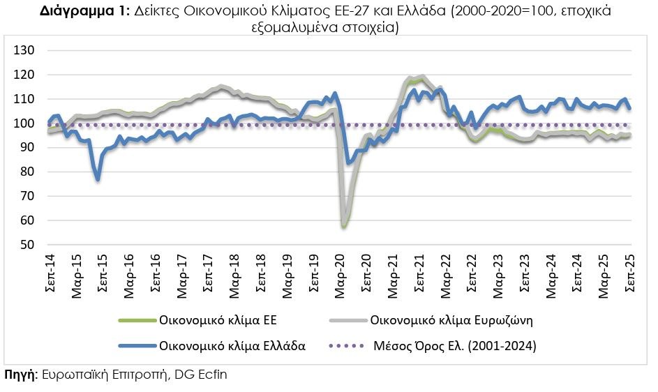 Ο δείκτης οικονομικού κλίματος τον Σεπτέμβριο ενισχύθηκε τόσο στην ΕΕ, όσο και στην Ευρωζώνη, όχι όμως και στην Ελλάδα σύμφωνα με έρευνα οικονομικής συγκυρίας του ΙΟΒΕ