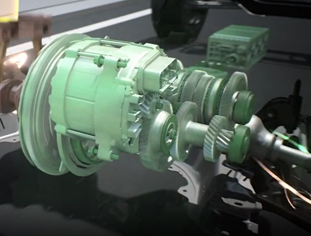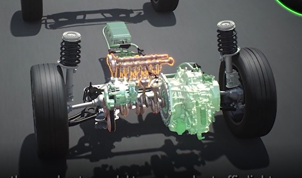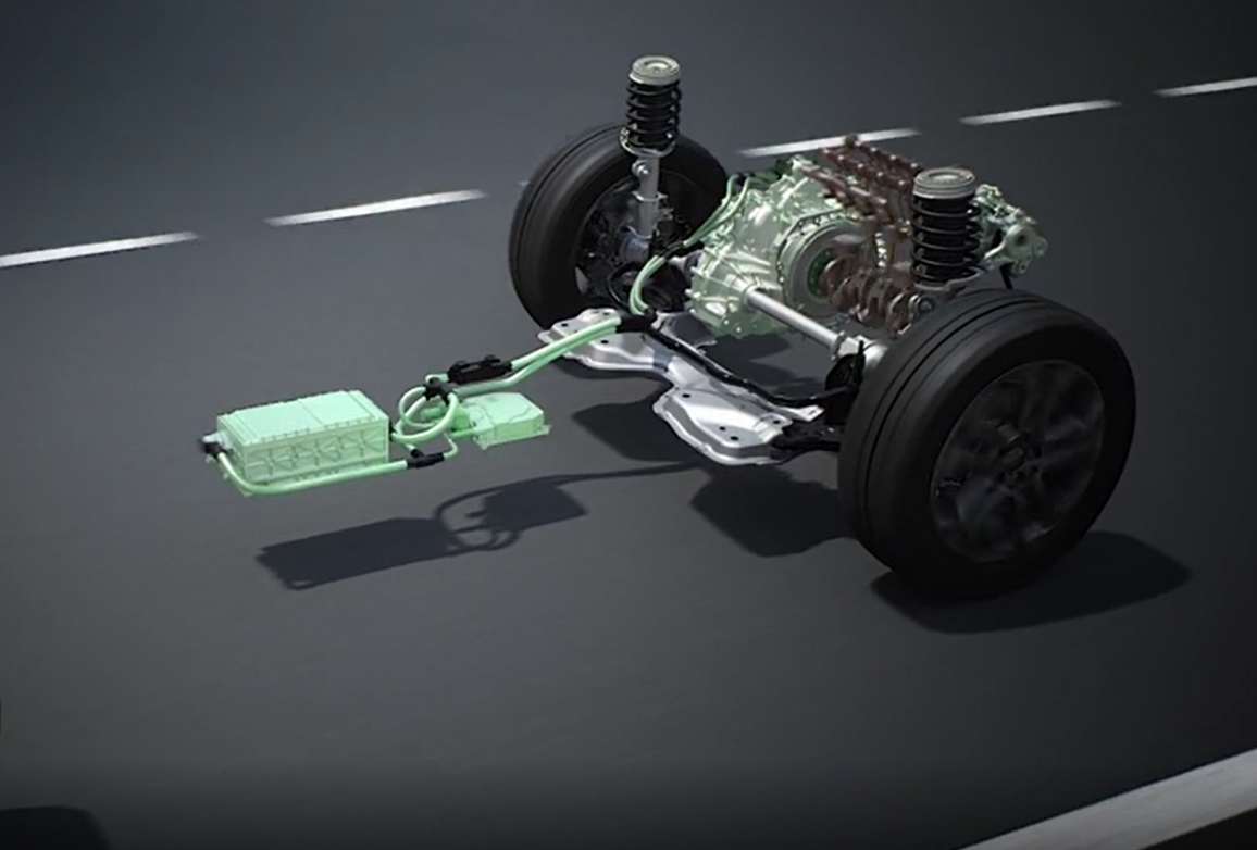 Ο θερμικός κινητήρας συνδυάζεται με δύο ηλεκτροκινητήρες. Ο