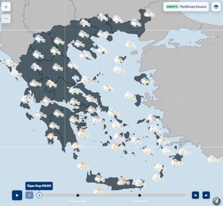 Ειδικότερα και σύμφωνα πάντα με την εθνικής μετεωρολογική υπηρεσία για σήμερα προβλέπονται: