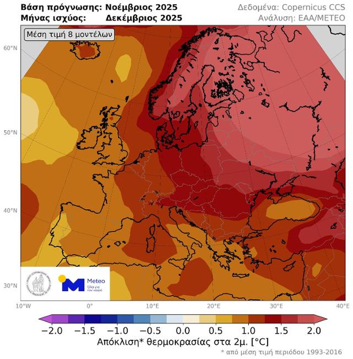 Θερμότερος του κανονικού αναμένεται να είναι ο Δεκέμβριος στην ΝΑ Ευρώπη (συμπεριλαμβανομένης της Ελλάδας) σύμφωνα με τις μακροπρόθεσμες προγνώσεις που εκδόθηκαν στις αρχές Νοεμβρίου.
