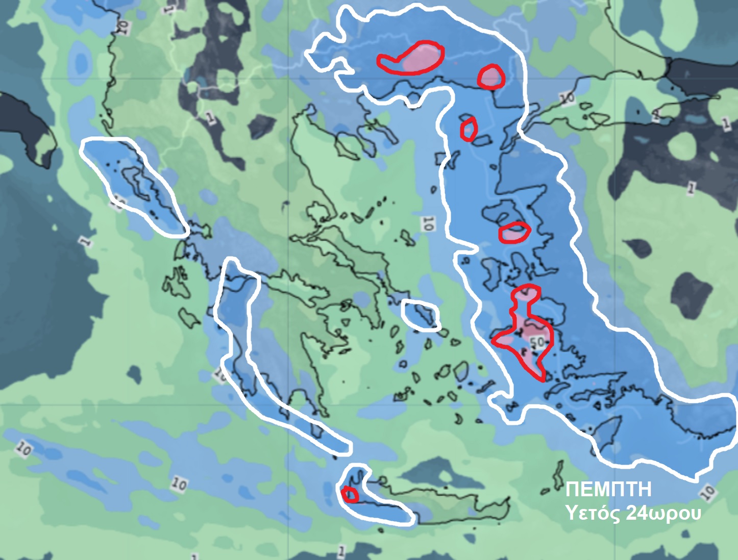 Η Πέμπτη αναμένεται να είναι η ημέρα με το μεγαλύτερο καιρικό ενδιαφέρον, καθώς βροχές και καταιγίδες θα εκδηλωθούν στο μεγαλύτερο μέρος της χώρας, τοπικά με ισχυρό χαρακτήρα.