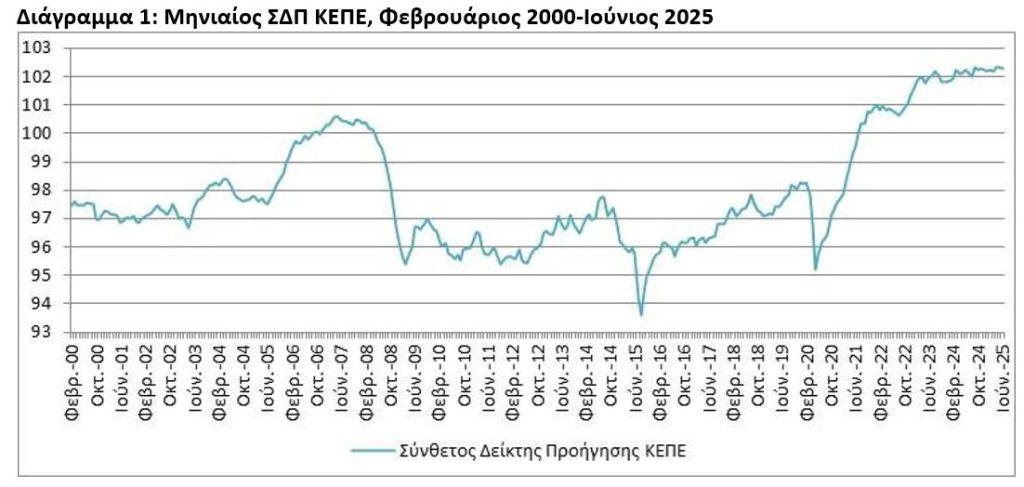 Παράλληλα, ο Σύνθετος Δείκτης Προήγησης (ΣΔΠ) σημείωσε πτώση τον Ιούνιο 2025 σε συνέχεια της οριακής ανόδου της προηγούμενης περιόδου αναφοράς, ενώ παραμένει σε υψηλά επίπεδα για το σύνολο της περιόδου εξέτασης.