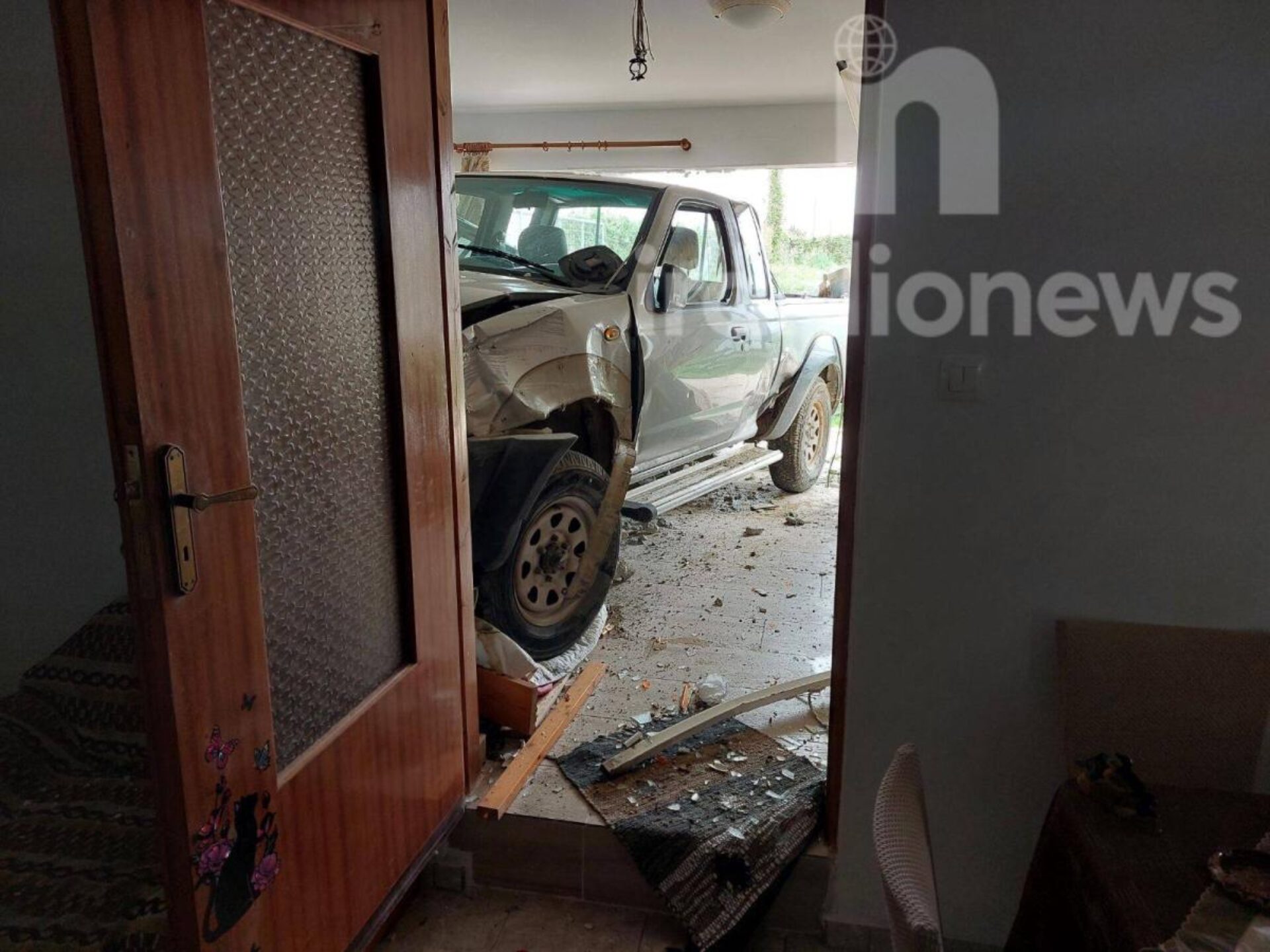 καθώς ένα pick-up (αγροτικό αυτοκίνητο) έσπασε τον τοίχο