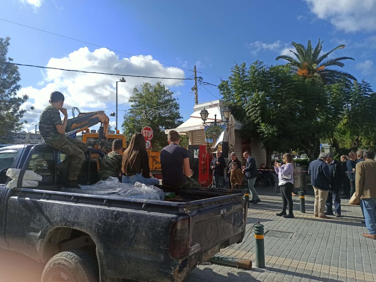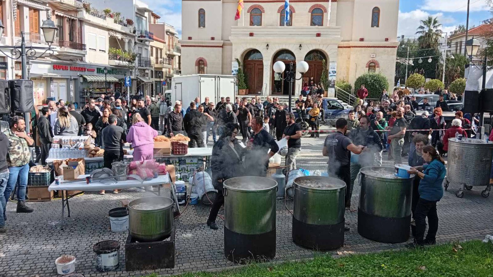 Εκεί πραγματοποιούν συγκέντρωση διαμαρτυρίας ψήνοντας σε καζάνια κρέας, το οποίο προσέφεραν στον κόσμο για να τον ευχαριστήσουν για την στήριξη στον αγώνα τους. Παράλληλα τις προηγούμενες ημέρες έσφαξαν μεγάλη ποσότητα αρνιών, τα οποία δώρισαν σε ιδρύματα για να μοιραστούν στα συσίτια του νομού.