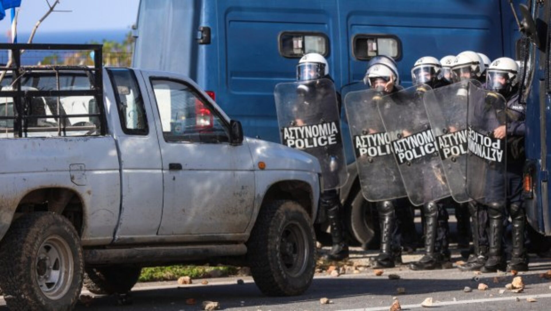 Στα Χανιά, οι αγρότες αναποδογύρισαν περιπολικό, ενώ και εκεί υπήρξαν συγκρούσεις με τις αστυνομικές δυνάμεις.