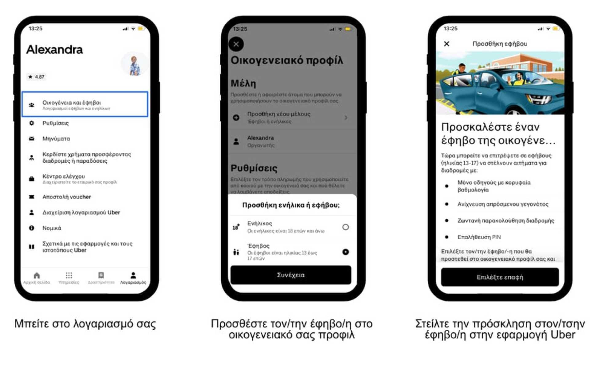 δημιουργήσουν έναν λογαριασμό Uber for Teens, μέσω πρόσκλησης από