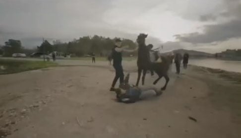 «Λοιπόν, κατά πάσα πιθανότητα τώρα θα πείτε, βρε τσουβάλι, πως έπεσες έτσι και σ’ακατέχεις. Η αλήθεια είναι πως η αλήθεια είναι κάπου στη μέση γιατί εντάξει, προφανώς δεν έχω εμπειρία πάνω στα άλογα αλλά από την άλλη είχε έρθει ένα αρσενικό άλογο δίπλα στο θηλυκό, σήκωσε τα πόδια του για να το κλωτήσει, τρομοκρατήθηκε το δικό μου το άλογο κι εγώ επειδή δεν είχα εμπειρία να το κρατήσω, σηκώθηκε στα δύο πόδια, με πέταξε και το αποτέλεσμα ήταν αυτό.