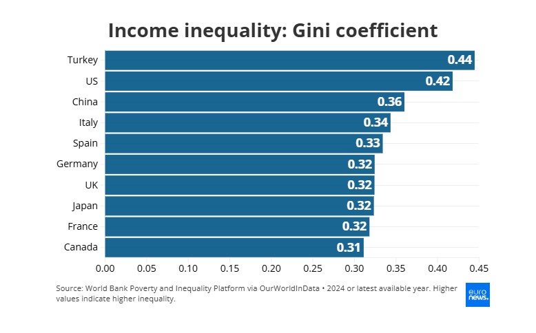 «Αν επιλέξουμε τυχαία δύο άτομα από αυτούς τους πληθυσμούς, ο αναμενόμενος λόγος των εισοδημάτων τους ξεπερνά το 4 στις ΗΠΑ, έναντι περίπου 1,5 στις τρεις ευρωπαϊκές χώρες. Αυτό δείχνει πόσο μεγαλύτερη είναι η διασπορά εισοδημάτων στις ΗΠΑ», εξηγεί ο Στερκ. Ως αποτέλεσμα, μεγαλύτερο ποσοστό του πληθυσμού βρίσκεται σε χαμηλά εισοδήματα και χρειάζεται περισσότερο χρόνο για να κερδίσει ένα δολάριο.