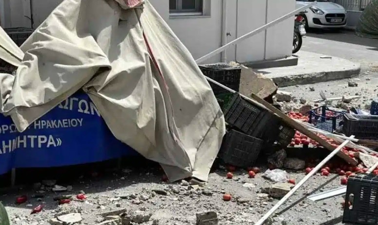 Κρήτη: Μπαλκόνι έπεσε σε πάγκο λαϊκής στα Καμίνια στο Ηράκλειο..
