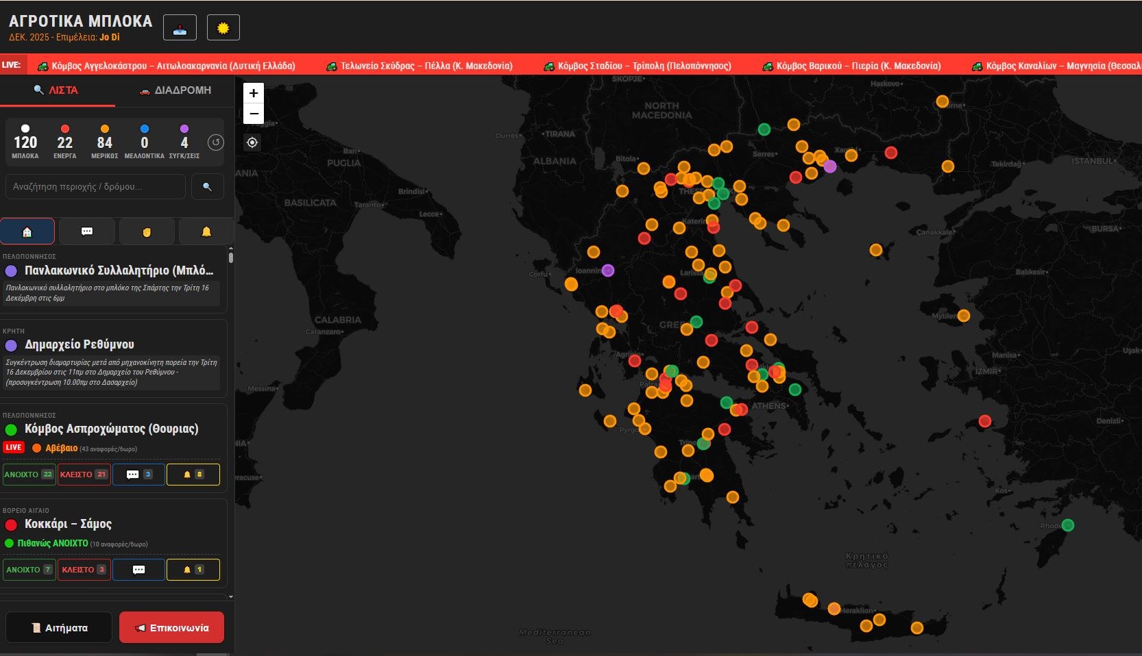 Μπλόκα στις εθνικές οδούς και μερικοί αποκλεισμοί δρόμων και τελωνείων υπάρχουν σε 120 σημεία σε όλη τη χώρα, από τον Έβρο μέχρι την Κρήτη.