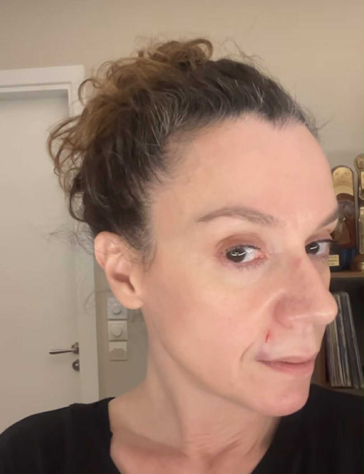 Το περιστατικό σημειώθηκε κατά τη διάρκεια θεατρικής παράστασης, όταν, τη στιγμή που έσβησαν τα φώτα για την αλλαγή σκηνικού, η ηθοποιός παραπάτησε και χτύπησε με δύναμη το πρόσωπό της στον τοίχο. Το χτύπημα αποδείχθηκε ιδιαίτερα έντονο, με αποτέλεσμα να εμφανιστεί άμεσα μελανιά γύρω από το μάτι, ενώ τραυματίστηκαν και τα χείλη της. Όσοι βρίσκονταν κοντά της αντέδρασαν με ανησυχία, καθώς το ατύχημα συνέβη ξαφνικά και μέσα στο σκοτάδι, χωρίς να υπάρχει χρόνος για άμεση αποφυγή. Αφού συνήλθε και δέχθηκε τις πρώτες βοήθειες, η ηθοποιός επέλεξε να ενημερώσει η ίδια το κοινό της, δημοσιεύοντας ένα σύντομο βίντεο στα μέσα κοινωνικής δικτύωσης, στο οποίο περιέγραψε αναλυτικά τις συνθήκες του ατυχήματος.