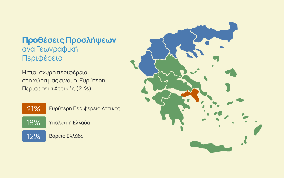 - Βόρεια Ελλάδα (12%): Κατατάσσεται τρίτη, με σταθερά θετικές προοπτικές.