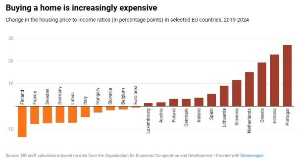 Στεγαστική κρίση στην Ευρώπη: Το κόστος στέγασης αυξάνεται ταχύτερα από τα εισοδήματα.