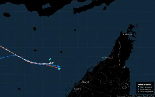 Το πετρελαιοφόρο Eagle Veracruz, που κατευθύνεται προς την Κίνα με 2 εκατομμύρια βαρέλια ιρακινού και εμιρατικού αργού πετρελαίου, έχει σταματήσει στη δυτική είσοδο του Στενού του Ορμούζ, όπου έχει ενωθεί με το Front Beauly, το οποίο μεταφέρει παρόμοια ποσότητα σαουδαραβικού αργού πετρελαίου.